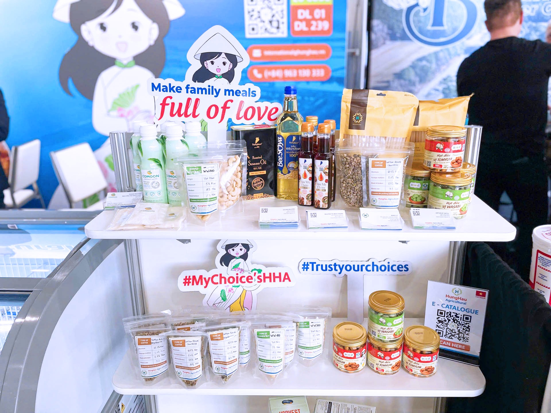 Tại sự kiện, HungHau Agricultural mang đến hệ sinh thái sản phẩm đa dạng từ thủy sản đông lạnh đến các dòng nông sản và thực phẩm giá trị gia tăng. Gian hàng đã thu hút sự quan tâm của đông đảo nhà nhập khẩu, đối tác quốc tế và chuyên gia ngành hàng đến tham quan, trải nghiệm và trao đổi hợp tác.