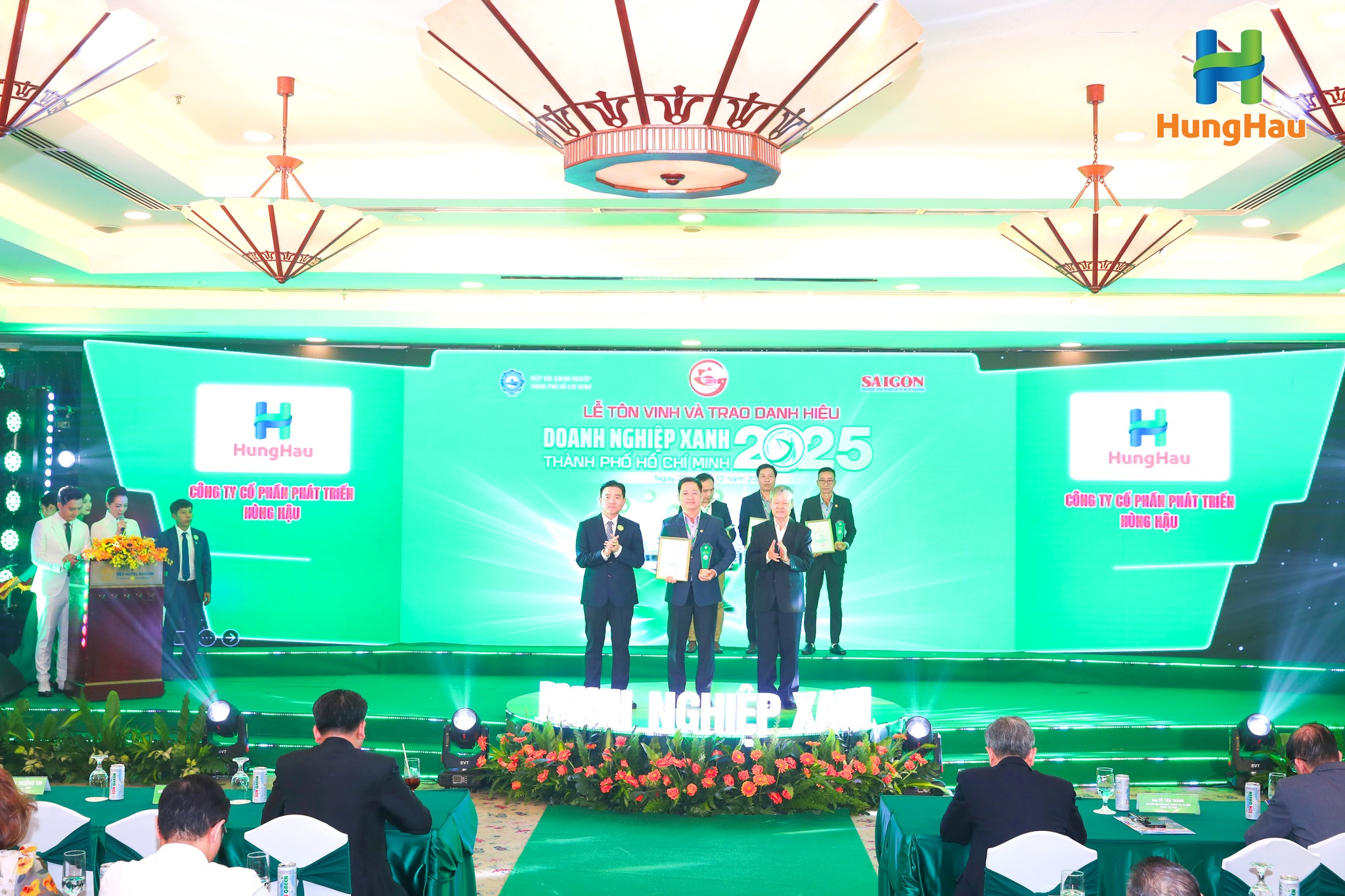 Trong khuôn khổ Lễ tôn vinh và trao danh hiệu Doanh nghiệp Xanh TP.HCM năm 2025, do UBND TP.HCM chủ trì, Báo Sài Gòn Giải Phóng phối hợp cùng Hiệp hội Doanh nghiệp TP.HCM (HUBA) tổ chức, Ngôi nhà Hùng Hậu đã có 03 đơn vị được vinh danh, bao gồm: