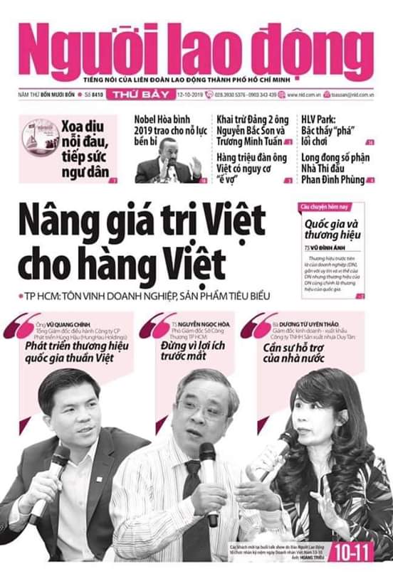 Nhân kỷ niệm ngày Doanh nhân Việt Nam (13/10) lần thứ 15, tại Hội trường Báo Người Lao Động, sáng ngày 10.11.2019 đã diễn ra buổi talkshow với chủ đề “Nâng giá trị Việt cho hàng Việt” do Báo Người Lao Động (NLĐ) tổ chức.